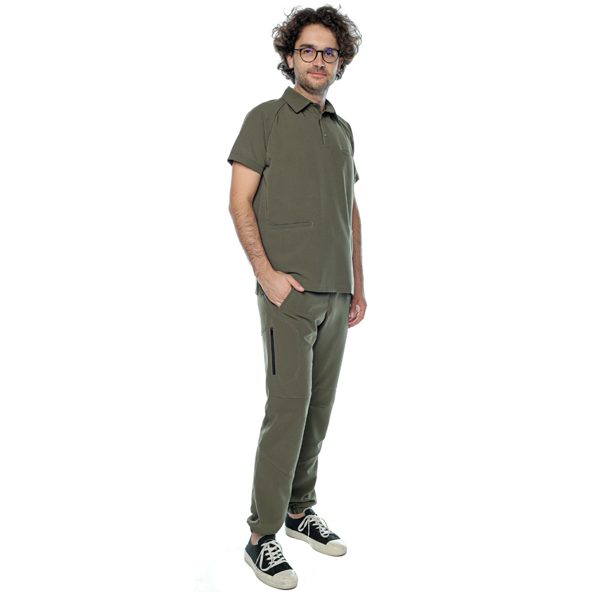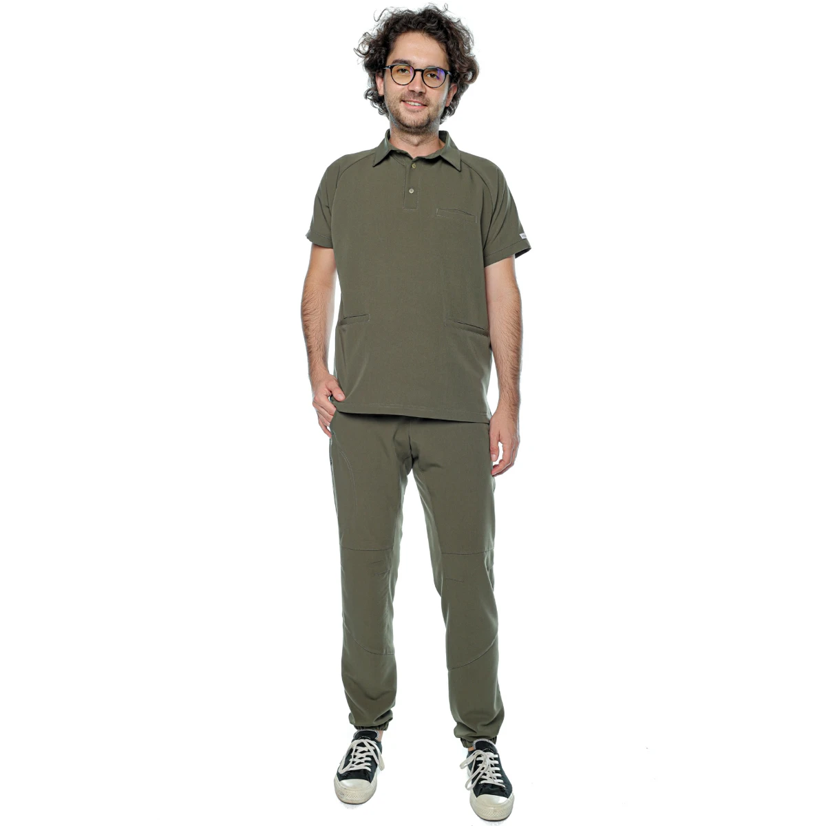 Costumul medical kaki Aslan de bărbați, compus din bluză și pantaloni, reprezintă mix-ul perfect dintre funcționalitate și calitate.