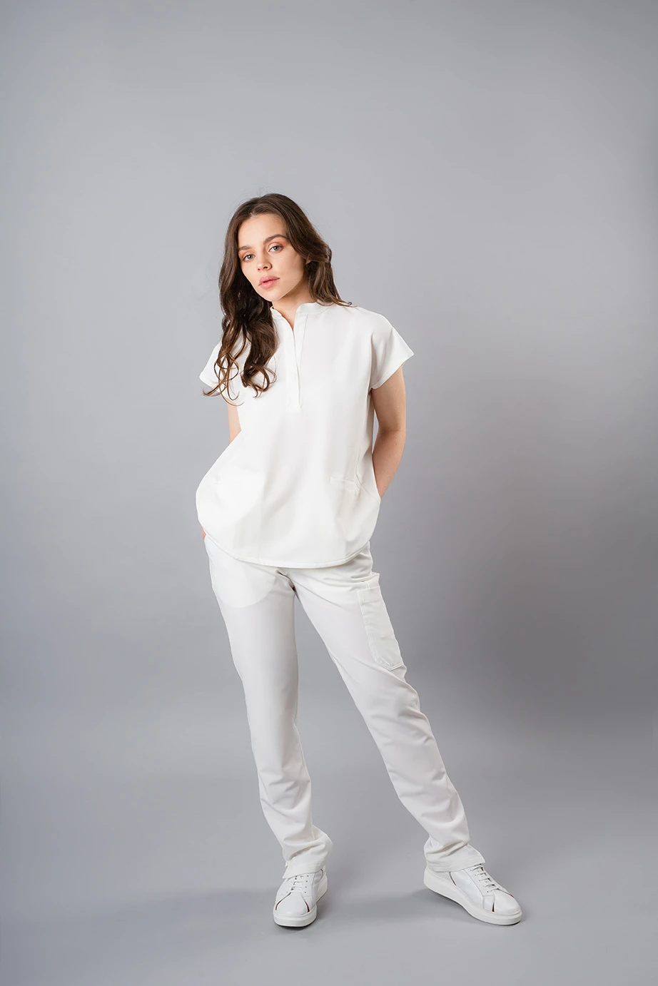 Pantalonii medicali albi Chieu de damă reprezintă mixul perfect dintre funcționalitate și calitate.