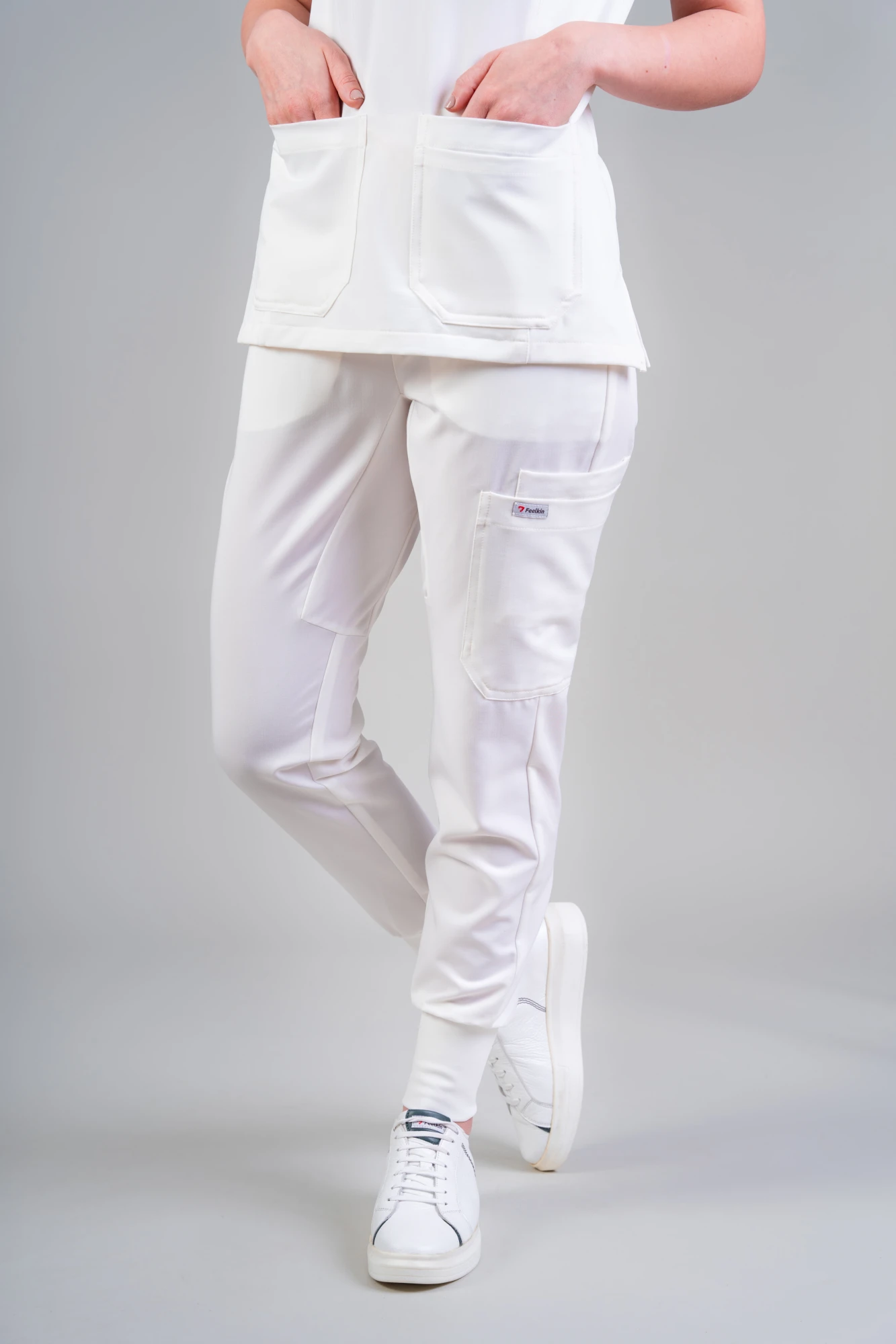 Pantalonii medicali albi Stone de damă reprezintă mixul perfect dintre funcționalitate și calitate.