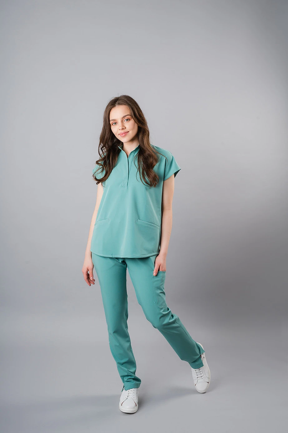 Pantalonii medicali verzi Chieu TALL de damă reprezintă mixul perfect dintre funcționalitate și calitate.